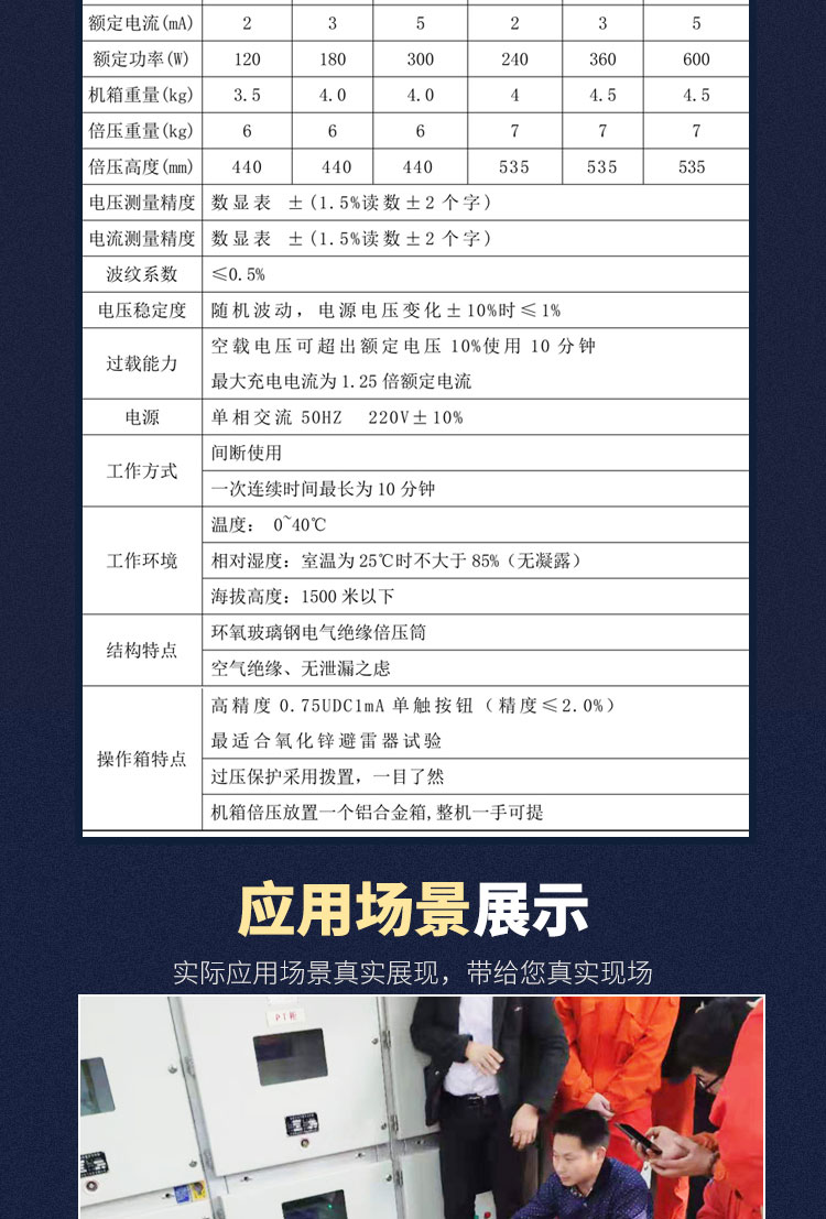 6、0.75UDC1mA功能按鈕,方便氧化鋅避雷器試驗,精度±(1.0%±2個字)。