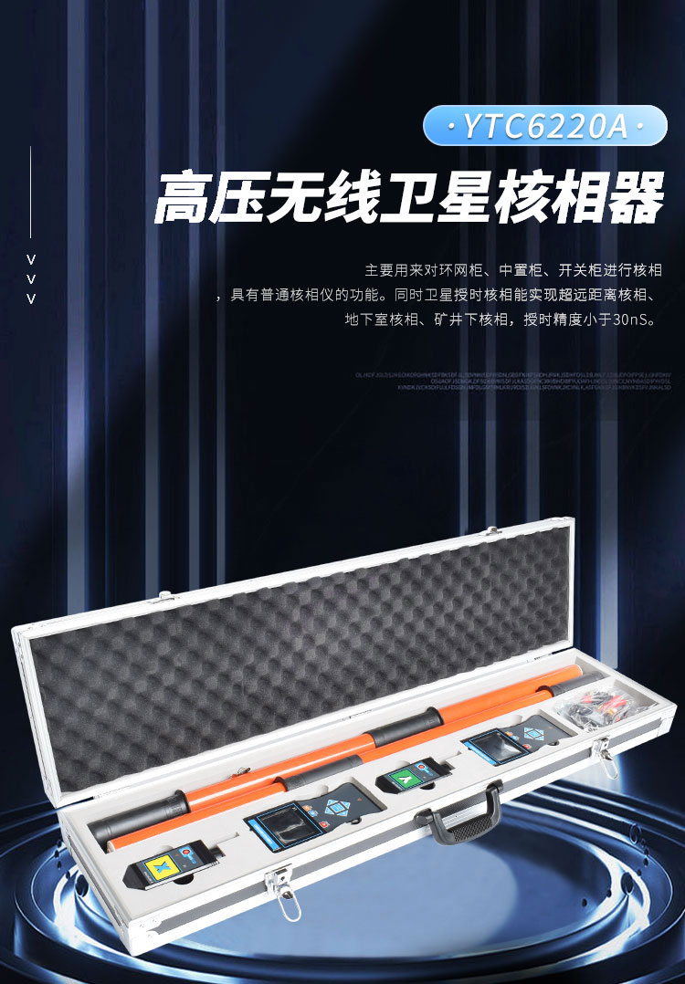 YTC6220A無線高壓衛(wèi)星授時遠程核相器由X接收器、Y接收器、X探測器、Y探測器、伸縮絕緣桿等組成,可以對環(huán)網(wǎng)柜、中置柜、開關柜進行核相,具有普通核相儀的功能。衛(wèi)星授時核相能實現(xiàn)超遠距離核相、地下室核相、礦井下核相,授時精度小于30nS。除了具有普通核相器的功能外,還內(nèi)置六合一多模衛(wèi)星授時模塊,可以同時接收六種衛(wèi)星授時系統(tǒng)的GNSS信號,并且實現(xiàn)聯(lián)合授時,確保核相準確。同時具有高壓驗電器、高壓相位表、高壓相序表的功能,可以用于驗電、相序測試,變壓器組別判斷等。