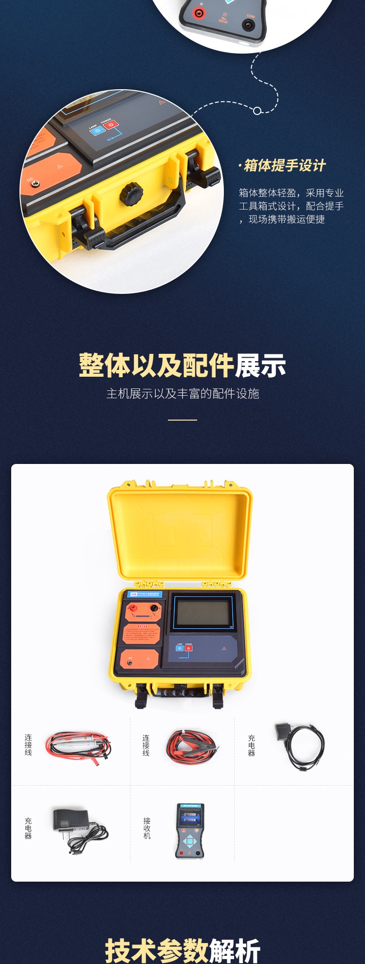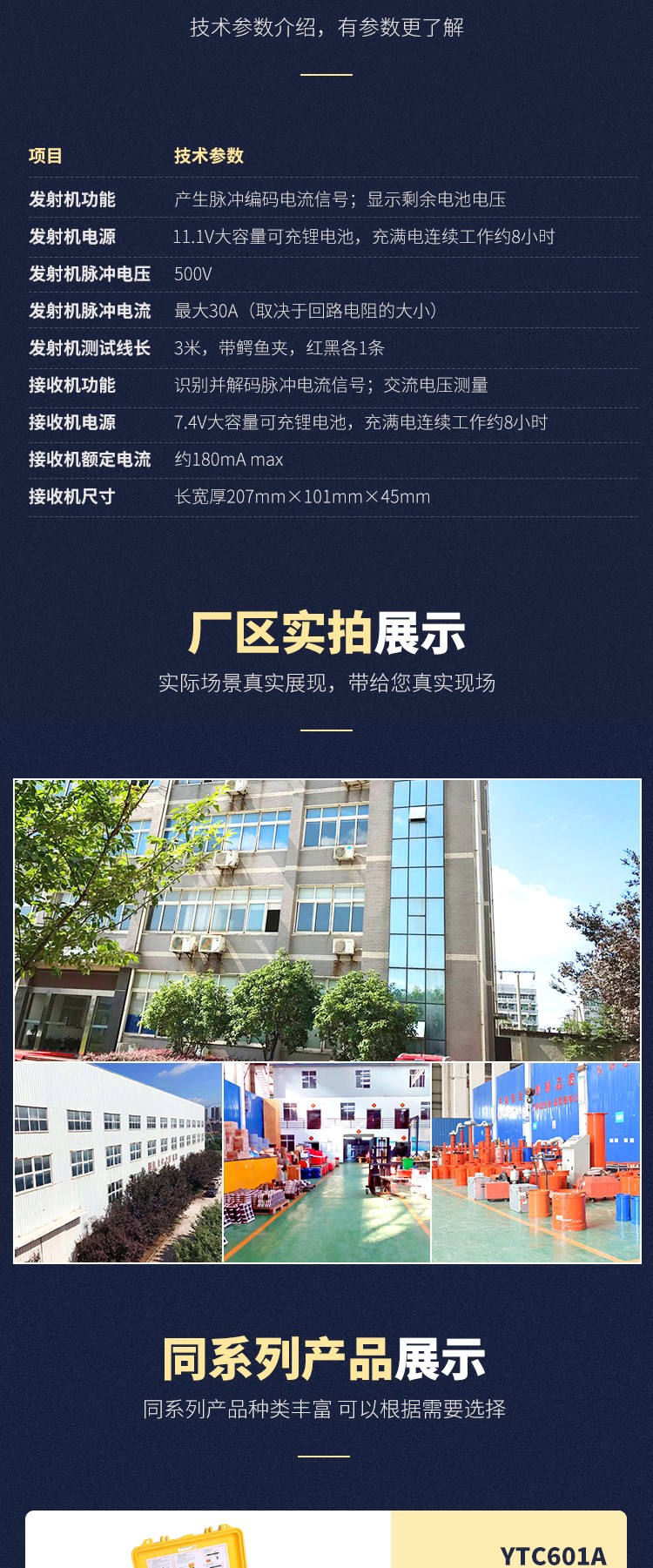 發(fā)射機:采用脈沖電流原理,給電纜線芯注入脈沖編碼電流信號,該電流在目標(biāo)電纜周圍產(chǎn)生電磁場,供接收機和柔性電流鉗檢測、解碼、識別;因電流有方向性,所以檢測也具有方向性。發(fā)射機采用一體化專用工具箱式設(shè)計,用聚丙烯塑膠作為原料,添加新型復(fù)合填充料一次注塑成形,密度小、強度、剛度、硬度、耐磨性、耐熱性、絕緣性能更優(yōu)越,其箱體能承受約200kg的壓力,主機超大LCD實時顯示剩余電池電量,白色背光、發(fā)射信號動態(tài)指示,一目了然。