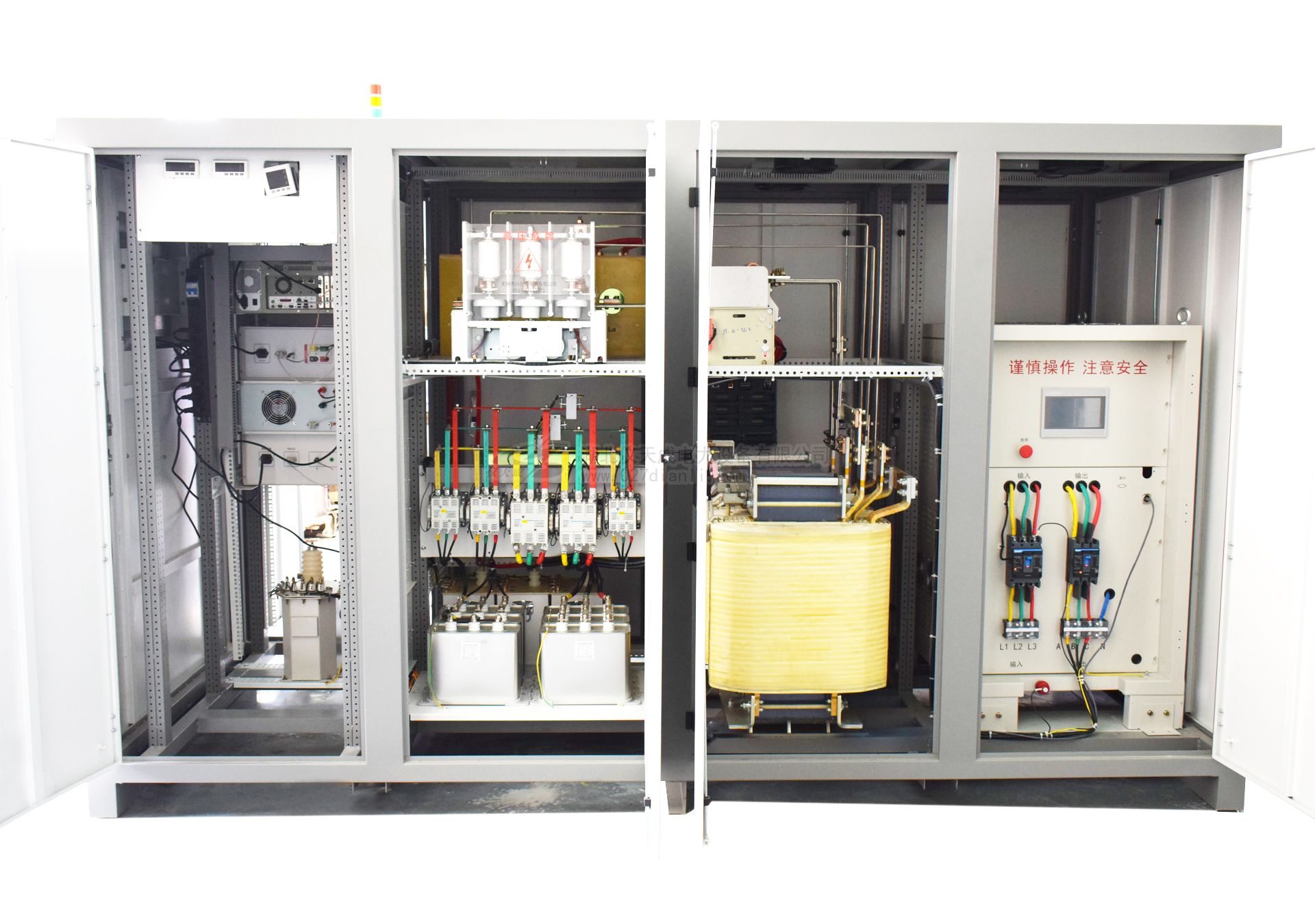該試驗臺主要是對電力變壓器,配電變壓器的直流電阻及變比測試,空載、負(fù)載特性及感應(yīng)耐壓,工頻耐壓試驗及溫升進行試驗。