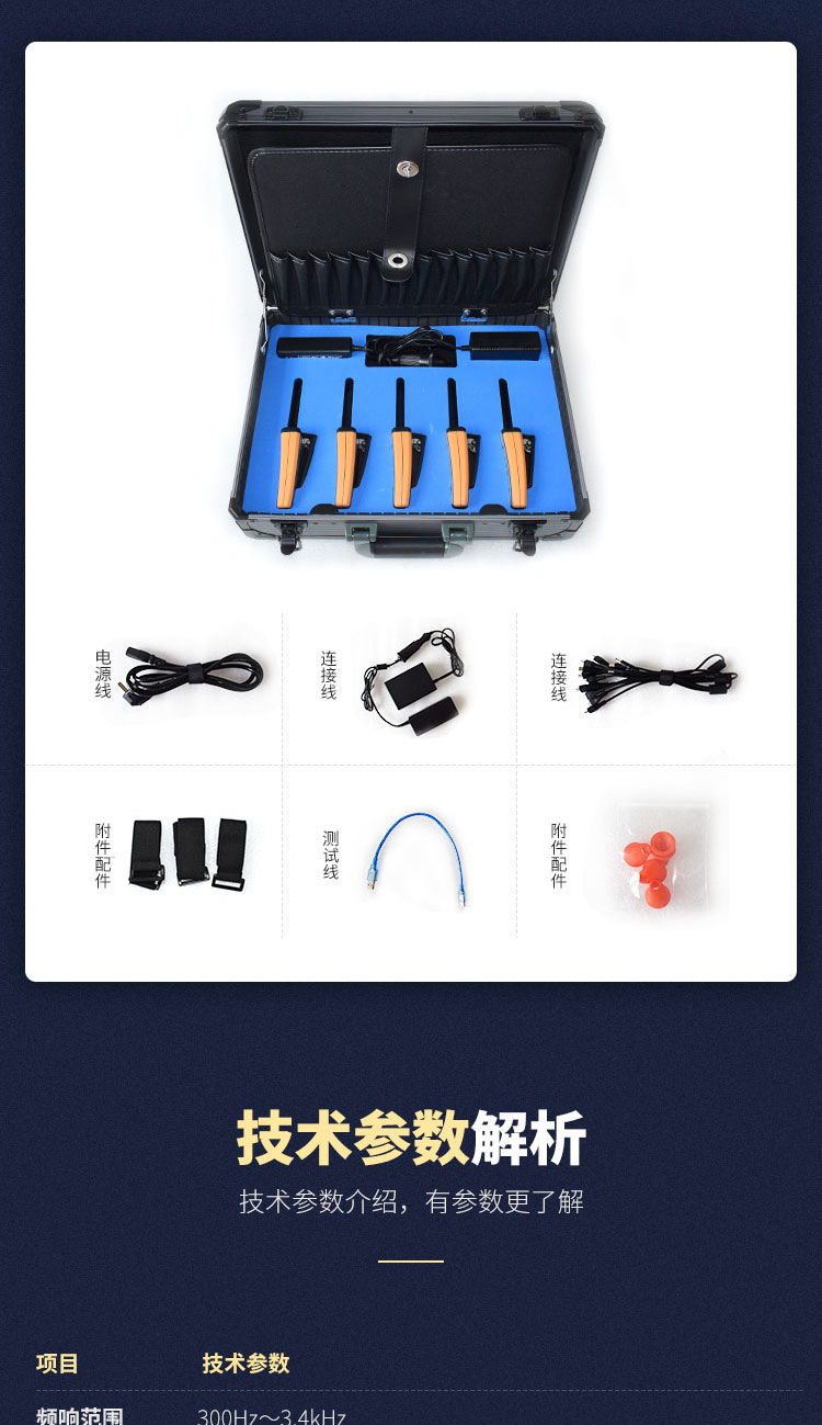 8、符合《微功率(短距離)無(wú)線電設(shè)備的技術(shù)要求》規(guī)定的多個(gè)頻段自動(dòng)跳頻工作,多套設(shè)備可同時(shí)工作互不干擾。