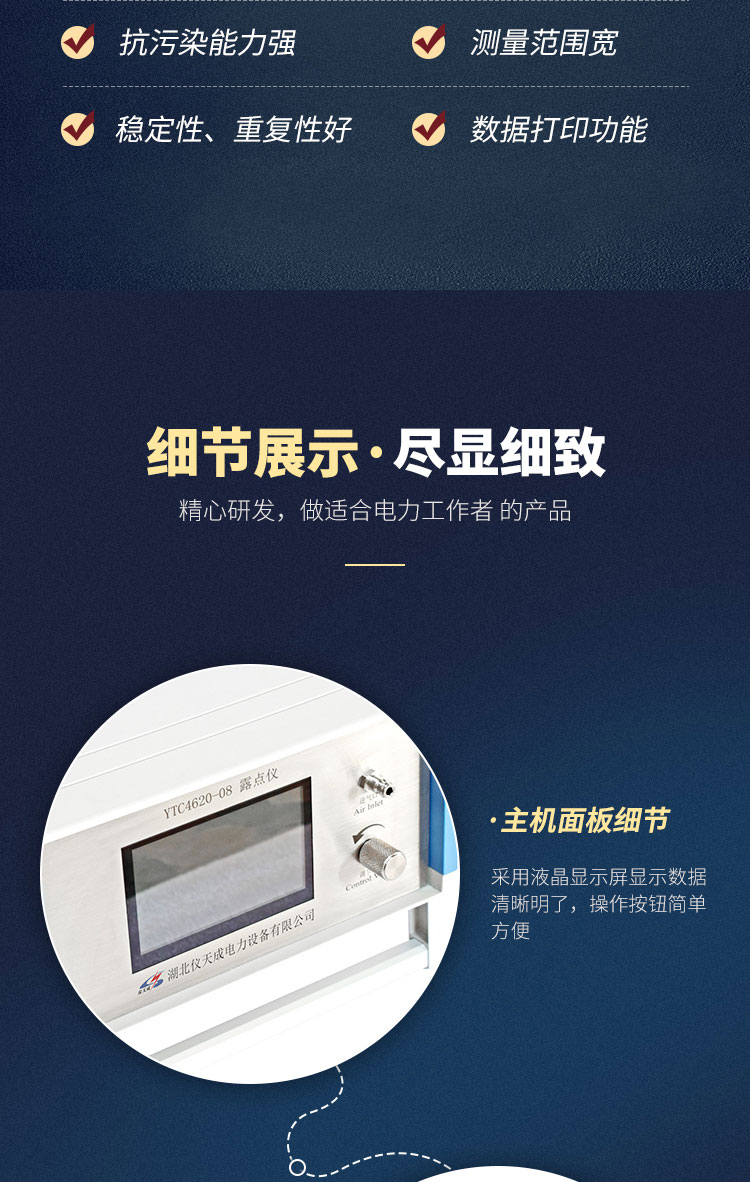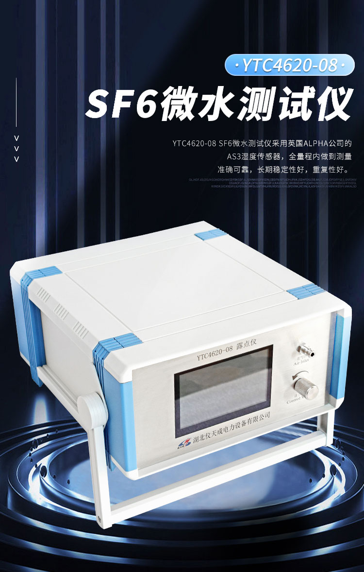 英國ALPHA公司的高分子薄膜電容式原理的濕度傳感器,在全量程內(nèi)做到測量準(zhǔn)確可靠,長期穩(wěn)定性好,重復(fù)性好。它不受灰塵粒子和大多數(shù)化學(xué)物污染的影響。YTC4620-08 SF6微水測試儀廣泛適用于電力、化工、航空、冶金、醫(yī)藥、食品等行業(yè)。
