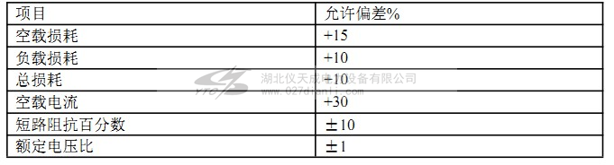 c)無局放試驗變壓器的空載電流、空載損耗、短路阻抗百分數(shù)、負載損耗、額定電壓比的允許偏差應不超過表4的規(guī)定。
