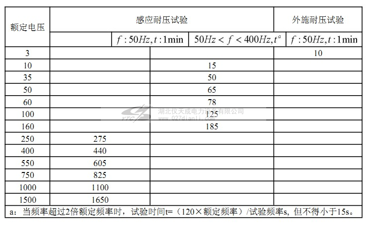 a)高、低壓繞組、測量繞組電氣絕緣強度按表2及表3規(guī)定;
